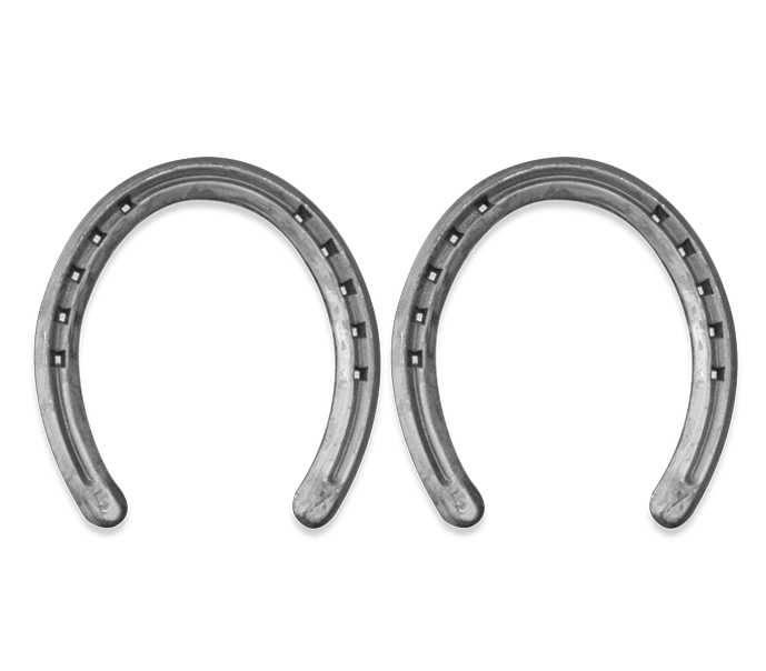 Ferri completamente rigati o rigati 3/4 senza barbetta, disponibili anche posteriori a due barbette laterali. Forma simmetrica. Stampe realizzate per guidare il chiodo nella giusta inclinazione delle muraglia.